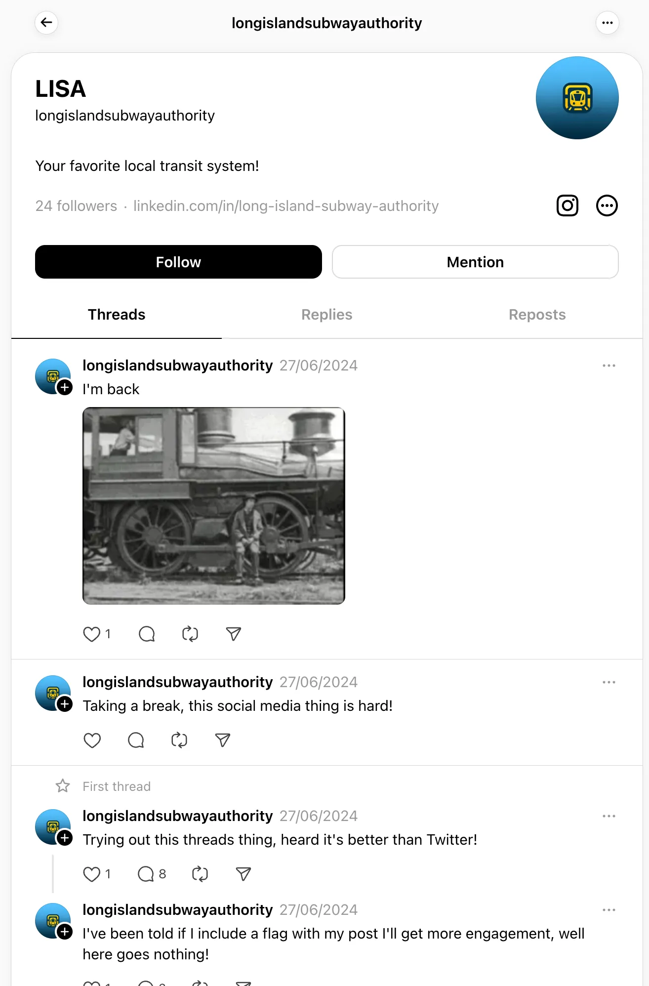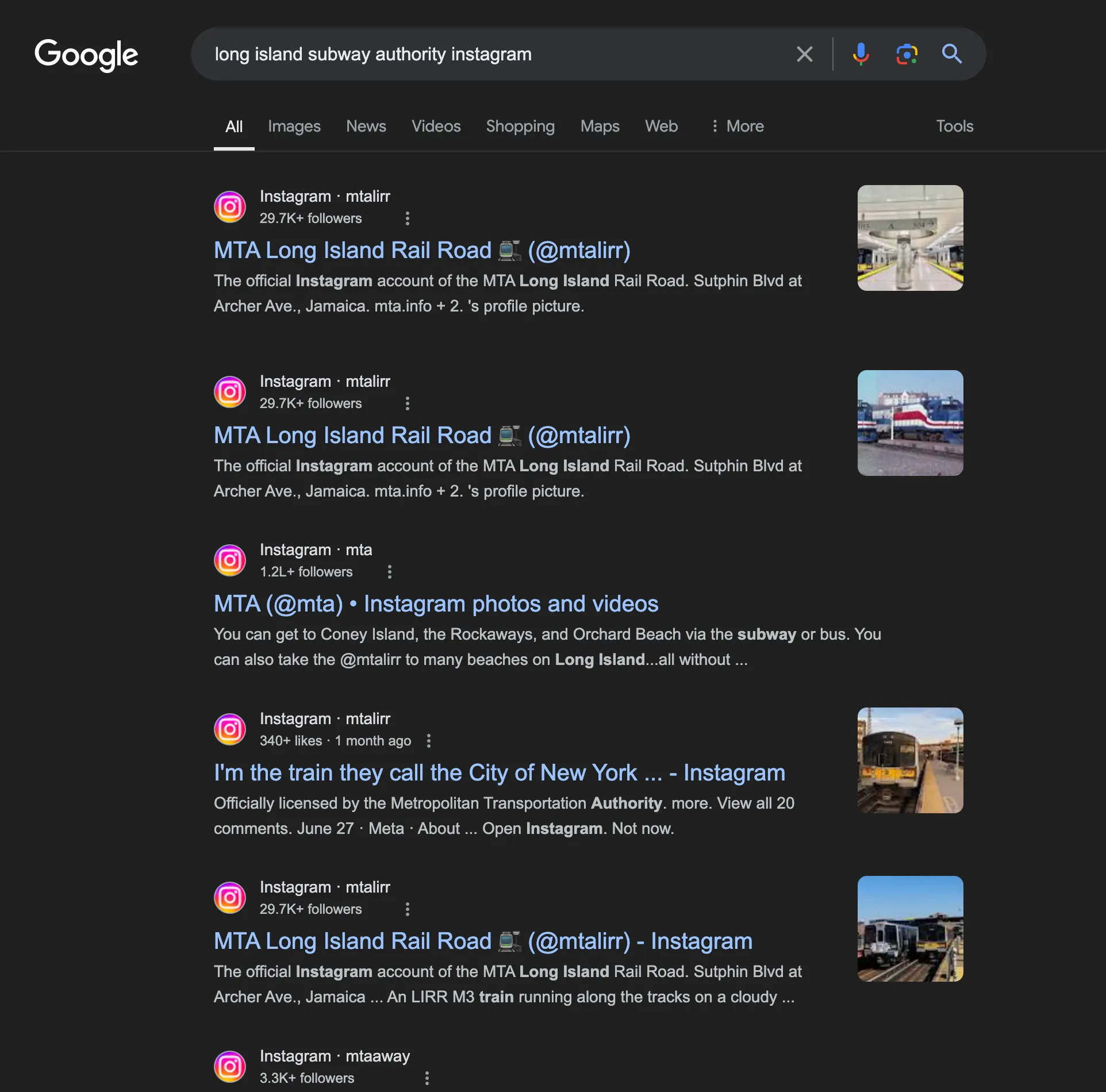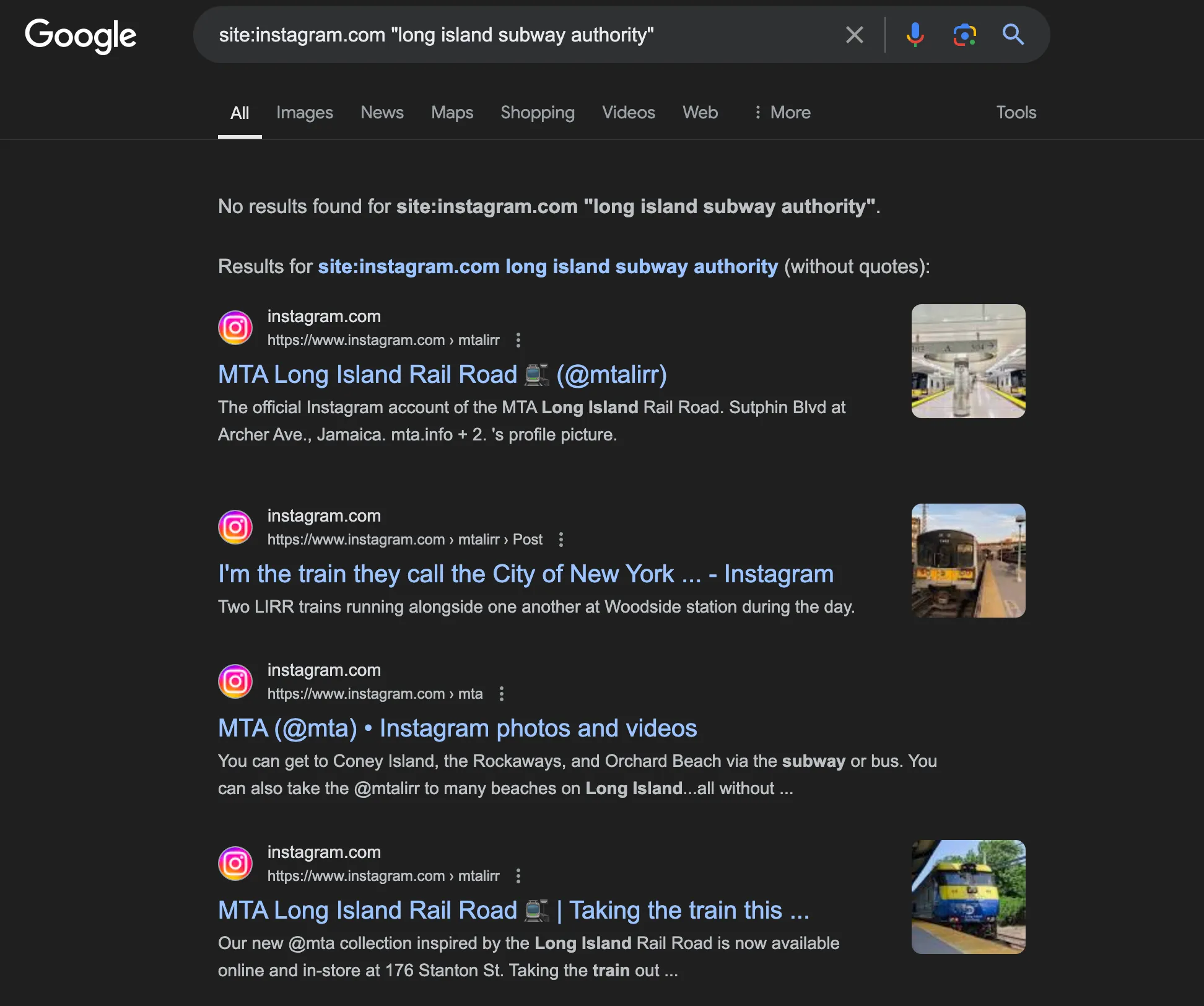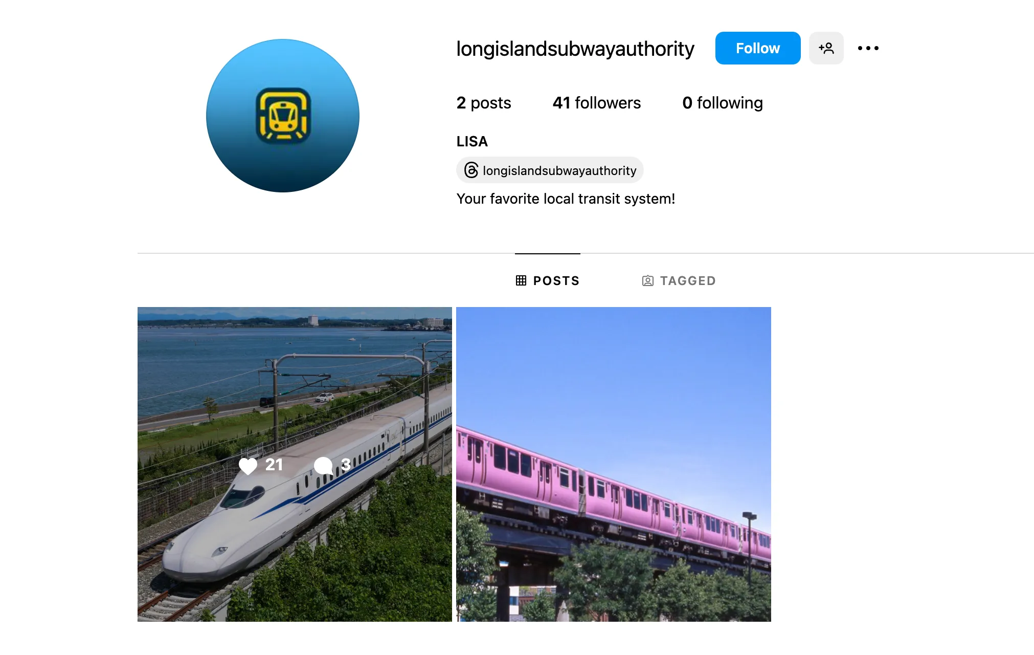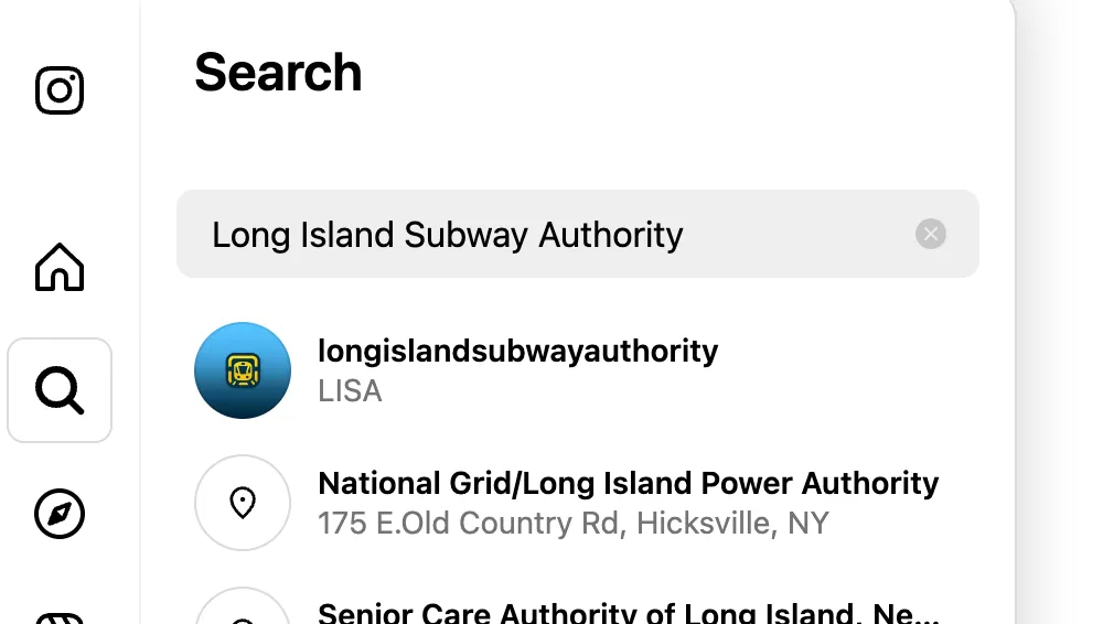To start, I searched “Long Island Subway Authority” on Instagram, which gave me this page: