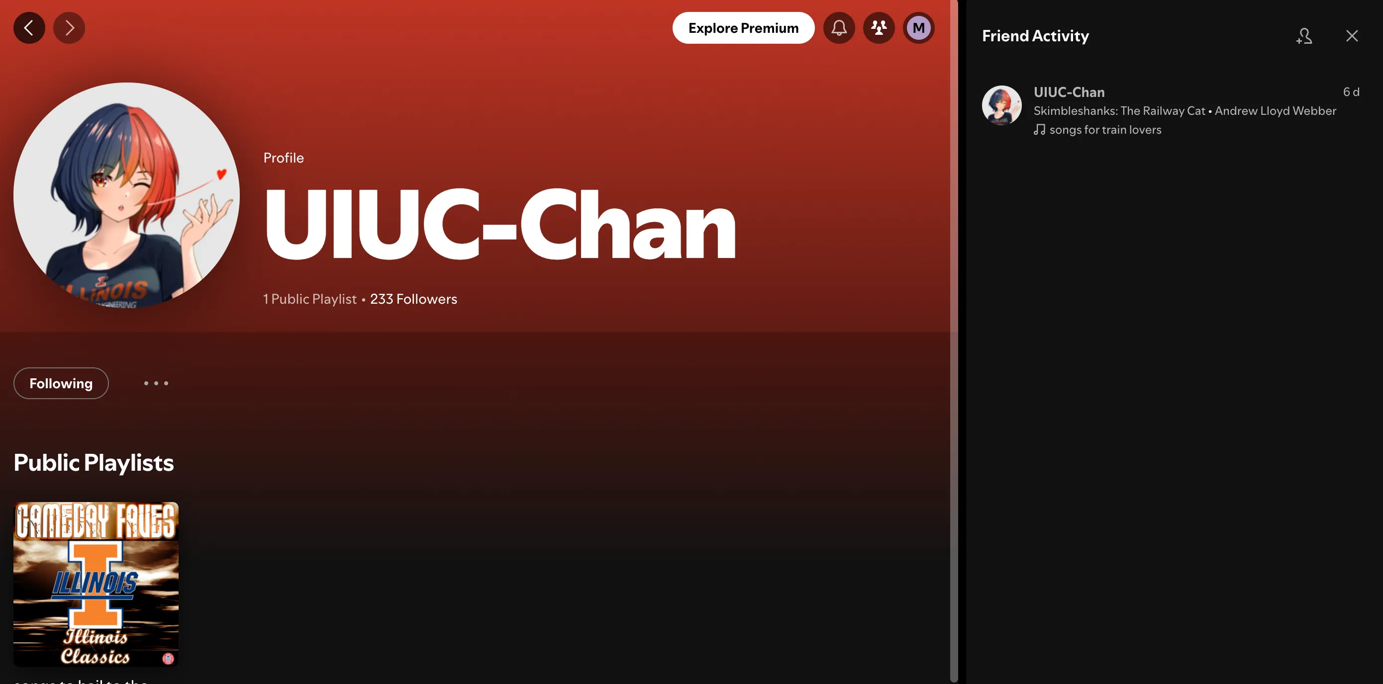 Now, if I searched for the playlists under UIUC Chan and the followers’ list, I tried to get some data but did not find it. But as soon as I clicked the follow button, I got a notification under the friend activity.