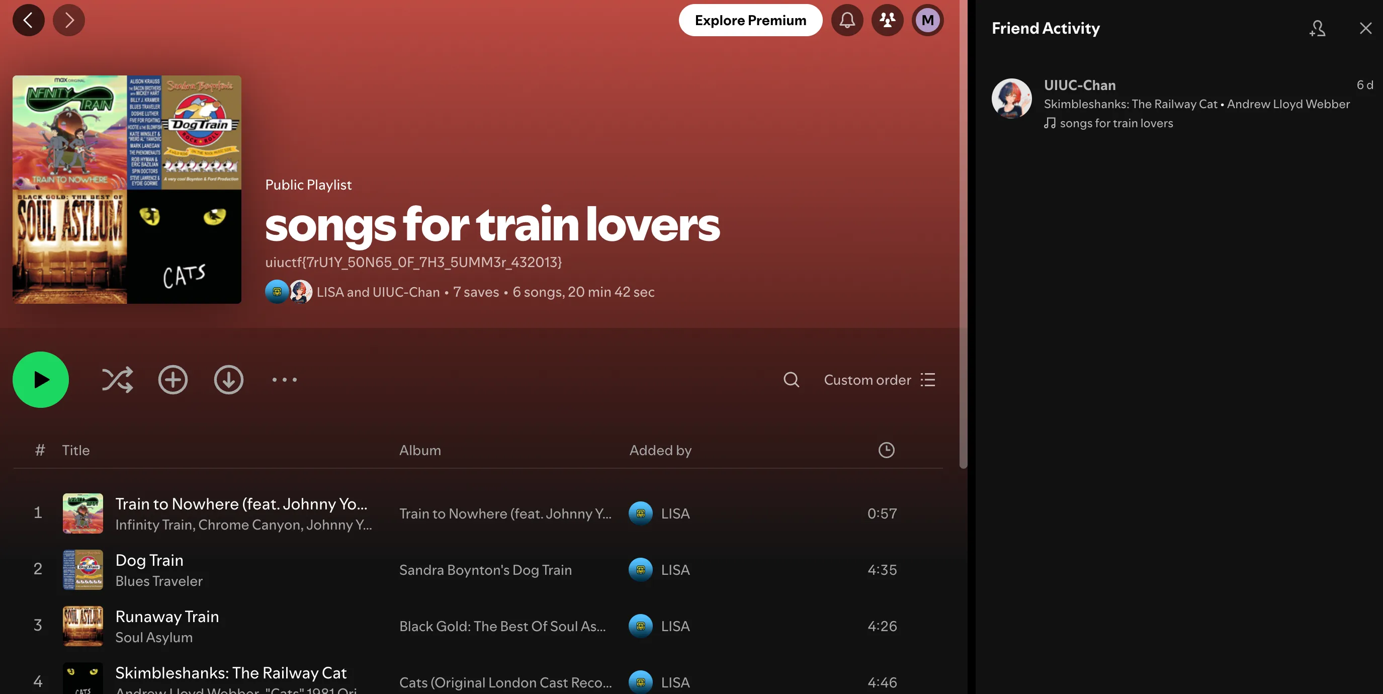 The flag is in the playlist info: uiuctf{7rU1Y_50N65_0F_7H3_5UMM3r_432013).
